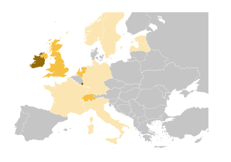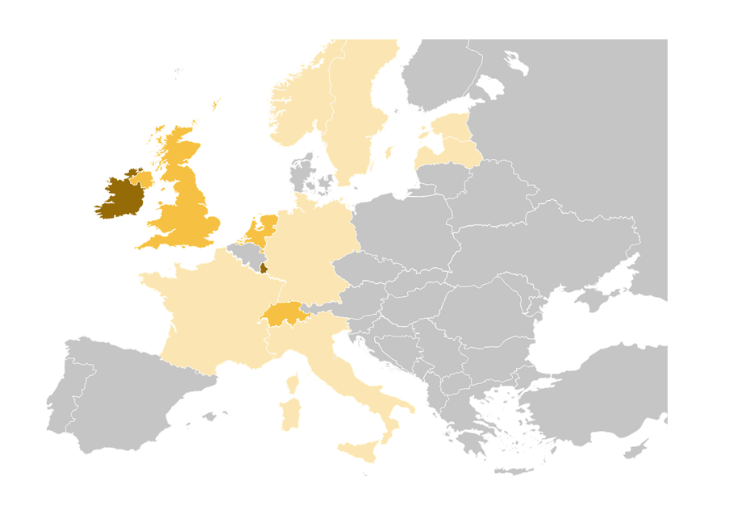 Key: Light - investments Yellow - office & investments Dark - fund domicile